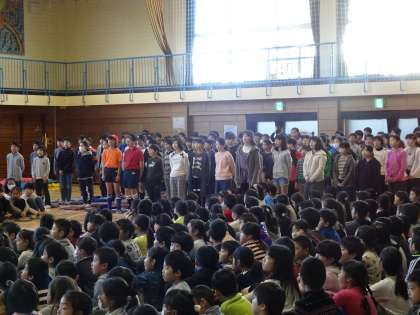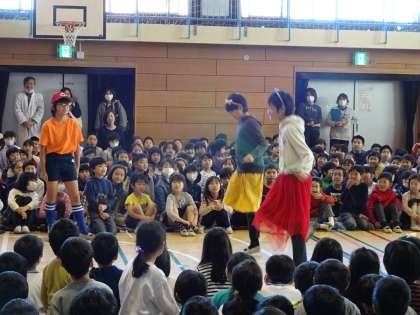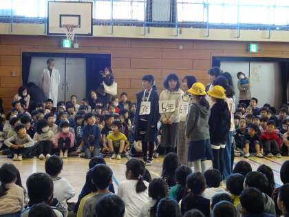 6年生を送る会(5年生) 公開日 2018/03/02 更新日 2018/03/02 5年生 5年生の演目は、いろいろな工夫がありました。 お笑い芸人のマネをみんなでやり、劇で6年生のよいところを紹介、最後は伴奏なしで歌を歌いました。 笑いあり感動ありで、高学年の力を見せてくれました。(3月2日)