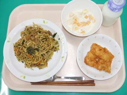 *ソース焼きそば *いかのカリン揚げ *フルーツヨーグルト *牛乳