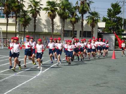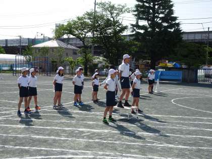 広い校庭に大きな声が響いています。金曜日の全体練習に向けて、頑張っています。