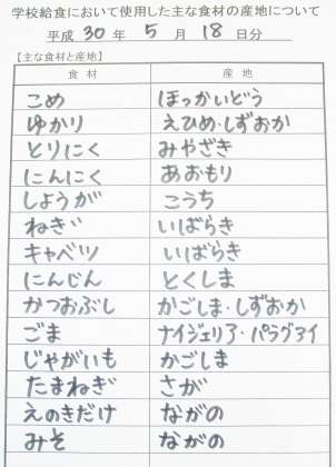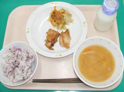 *ゆかりごはん *とりの照り焼き *キャベツのおかか炒め *みそ汁 *牛乳