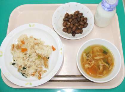 *子ぎつねごはん *うずら豆の煮豆 *吉野汁 *牛乳