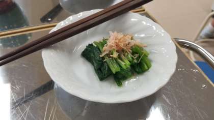 3回目の調理実習は、「ほうれん草のおひたし」作り。コンロや包丁の使い方、洗い物の仕方にも慣れてきました。