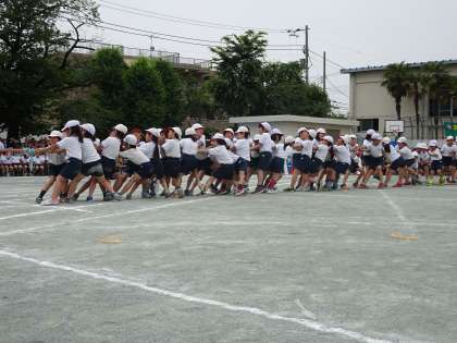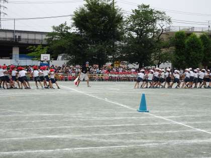 「お助けつな引き」 笛の合図で、綱まで走り、綱引きをしました。力を出し切りました。