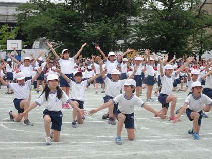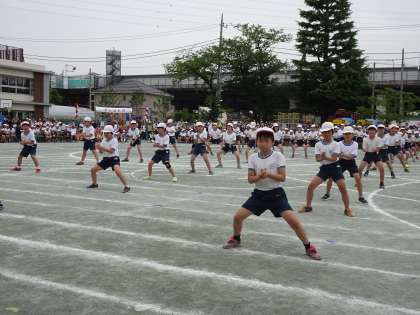 運動会 表現運動(5年生) 公開日 2018/05/28 更新日 2018/05/28 5年生 「The Greatest Show」 今年の午前の締めくくりは、5年生でした。はじめの曲では元気に踊り、次の曲ではクールに、音に合わせてピシッと体を止める姿がとてもかっこよかったです。