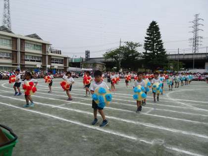 「花笠音頭」 花飾りを付けた花笠を手にし、しっかりと腰を落として踊りました。鈴の音がとてもきれいでした。