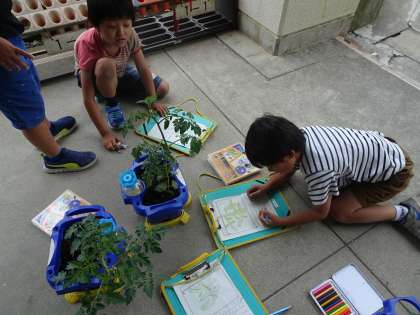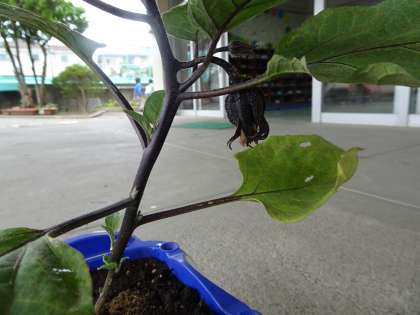 ナスを育てています。大きくなったので観察しました。 どれくらい大きなナスが育つのか楽しみです。(5月31日)