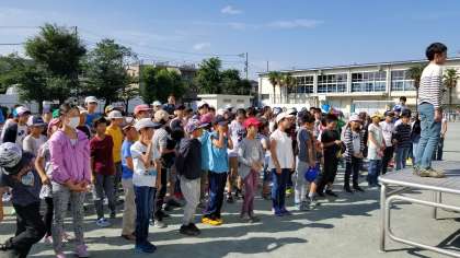 川場移動教室出発式(5年生) 公開日 2018/06/05 更新日 2018/06/05 5年生 待ちに待った、川場移動教室です。 みんな、大きな荷物を背負って登校しました。 出発式では、「安全に、協力して、絆を深め、最高の思い出を作ろう!」のめあてをみんなで確認しました。 5年生全員揃って、元気に行ってきます!(6月4日) 5年
