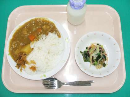 *カレーライス *福神漬 *海そうサラダ *牛乳