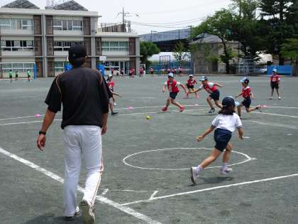 読売ジャイアンツの方が来校して、野球教室を開催しました。