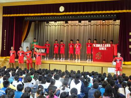 今年もオリンピック・パラリンピック教育でお世話になる駒沢大学を代表してサッカー部の皆さんが来校しました。