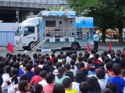 その後、4年生は起震車の体験をしました。震度7は経験がない揺れの強さです。