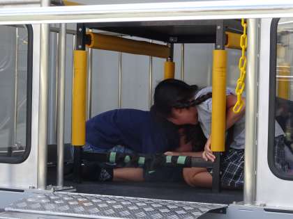 必死に机に掴まる子もいれば、怖くて泣き出してしまう子もいました。