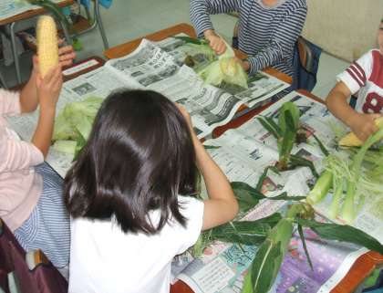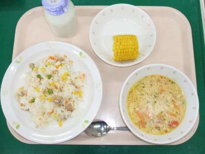 6月20日の給食 公開日 2018/06/20 更新日 2018/06/20 その他の教育活動 *3色ピラフ *ゆでとうもろこし *トマトと卵のスープ *牛乳 今日の給食は「はたらく給食」です! 1年生全員で、全校分のとうもろこしをむいてもらいました。 とても上手にむいてくれて、とてもおいしくいただきました。、