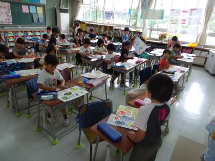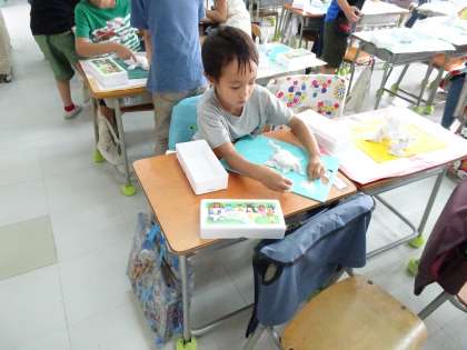 図工では、絵の具を使って絵を描いたり、粘土で作品を作ったりしています(6月21日)