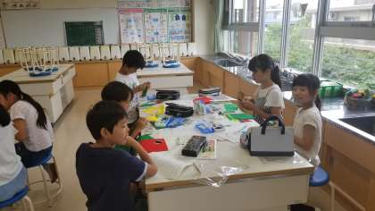 完成したマグネットをホワイトボードにくっつけて、嬉しそうに眺めていました。なみ縫い、かがり縫いも上手です!