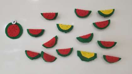 家庭科の裁縫実習で、すいかのマグネットを作りました。