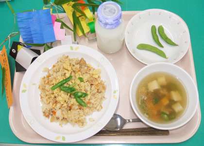 7月6日の給食 公開日 2018/07/06 更新日 2018/07/06 その他の教育活動 *そぼろごはん *えだまめ *七夕汁 *牛乳 *みかんシャーベット 明日の七夕にちなみ、今日は七夕献立です。 そぼろごはんで天の川を作り、各クラスに七夕飾りを配りました。 明日、お空の上で、織り姫と彦星が逢えるといいですね。