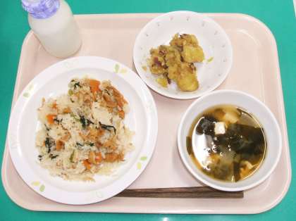 *子ぎつねごはん *さつまいもの煮ころがし *みそ汁 *牛乳