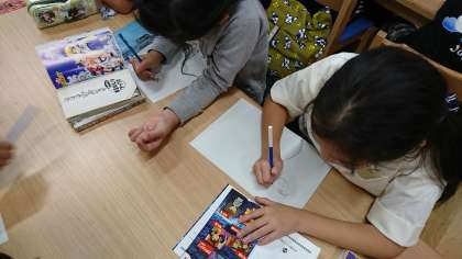 今日は駒沢大学の大学生をゲストティーチャーとしてお招きし、イラストの描き方を教わりました。