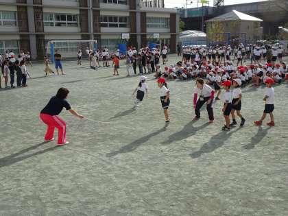 いよいよみんなで長縄。「ハイハイ。」という掛け声や「どんまい。」という声がたくさん聞こえてきて、クラスの団結する力が伝わってきました。