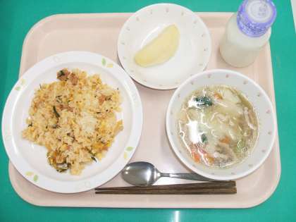 *キムチチャーハン *ワンタンスープ *くだもの(りんご) *牛乳