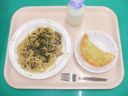 *和風スパゲティー *スイートポテトパイ *牛乳
