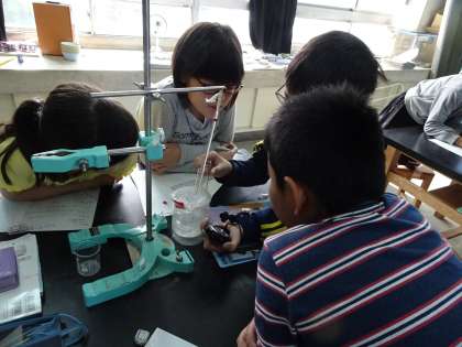 4年2組では、冷やす実験をしました。少しずつ凍っていく様子をじっくり観察し、水温の変化や水の様子をレポートにまとめました。(11月1日)