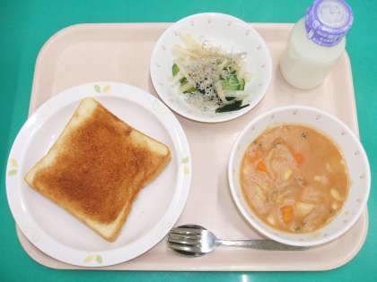 *シナモントースト *じゃこサラダ *ビーンズシチュー *牛乳