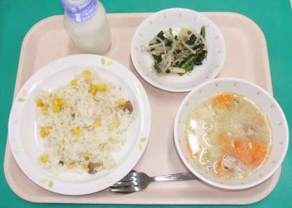 *チキンピラフ *青菜ときのこのソテー *ABCスープ *牛乳
