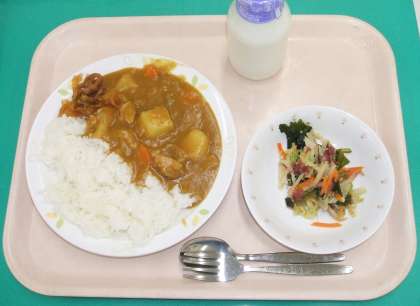 *チキンカレーライス *福神漬 *海藻サラダ *牛乳