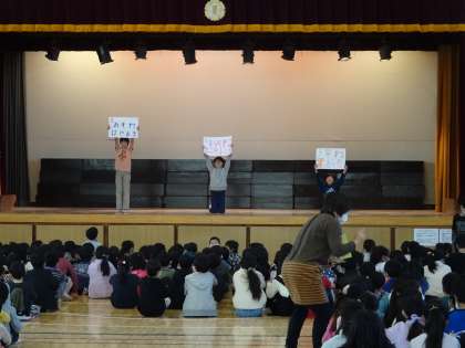児童集会 公開日 2019/01/24 更新日 2019/01/24 その他の教育活動 保健委員会から、健康な生活のための集会がありました。 手洗いの大切さ、つき指したときの対処法などを、劇とクイズを交えながら紹介しました。 体調を崩しやすい時期です。自分で、健康管理ができるようになるといいですね。(1月24日)