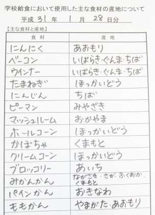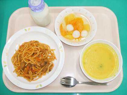 1月28日の給食 公開日 2019/01/29 更新日 2019/01/29 その他の教育活動 *スパゲティーナポリタン *かぼちゃのスープ *白玉入りフルーツポンチ *牛乳 今日は6年生のリクエスト給食です。