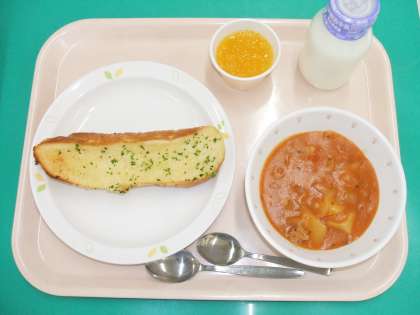 *ガーリックトースト *トマトシチュー *みかんゼリー *牛乳