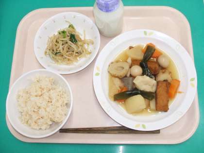 *茶めし *おでん *もやしのごま風味 *牛乳