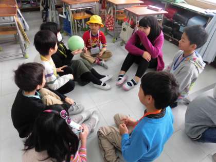 みんなの前に立った時には、少し緊張した様子でしたが、6年生のサポートもあり、楽しく遊ぶことができました。