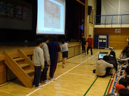 クラブ発表集会 公開日 2019/02/14 更新日 2019/02/14 その他の教育活動 水曜日・木曜日の朝の時間に「クラブ発表集会」がありました。 クラブでは、どんな活動をしているのか、写真や動画を見せたり、実際にやってみたりしながら紹介しました。来年度に作りたいクラブの募集もありました。 3〜5年生は、来年のクラブの参考になったのではないでしょうか。1、2年生も興味深く見ていました。「はやくクラブをやりたいな。」という声も聞こえました。(2月13、14日)