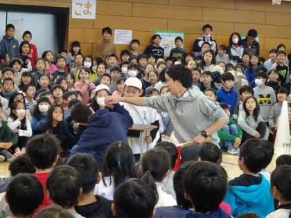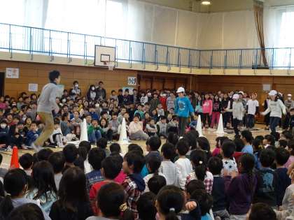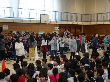 6年生を送る会 2 公開日 2019/02/15 更新日 2019/02/15 その他の教育活動 4年生は、流行の曲を替え歌にして、気持ちを伝えました。体育館全体が盛り上がりました。 5年生は、6年生と対決しました。なわとび・腕相撲・競走で競いました。結果は引き分けでした。5年生は練習をしていましたが、それでも引き分けにできる6年生はさすがです。 どの学年も、工夫があって楽しい出し物でした。6年生も嬉しそうでした。