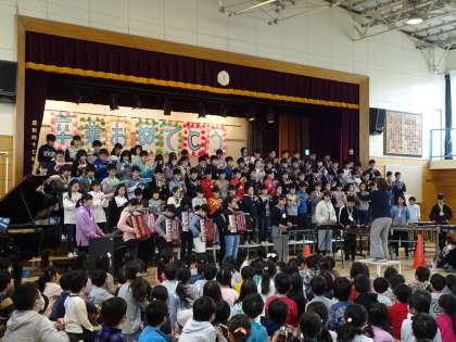 6年生を送る会 3 公開日 2019/02/15 更新日 2019/02/15 その他の教育活動 6年生からは、合奏のお礼がありました。素晴らしい演奏で、アンコールもありました。また、在校生に向けてのメッセージフラッグもプレゼントしてくれました。 計画委員を中心に、いろいろな学年が関わって、会を成功させました。 6年生と過ごす日々も、残りわずかです。まだまだ6年生のかっこいいところを見たいですね。そして、感謝や応援する気持ちをこれからも伝えていってほしいです。
