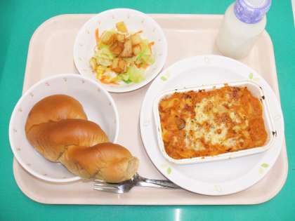 *黒ざとうパン *ラザニア★ *じゃがいものハニーサラダ *牛乳