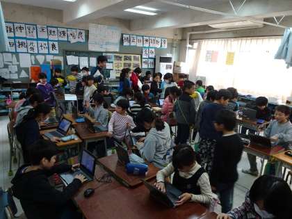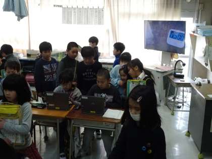 どのクラブにも興味津々でした。写真は、パソコンクラブでの様子です。