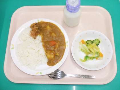 *カレーライス *福神漬 *野菜の甘酢かけ *牛乳