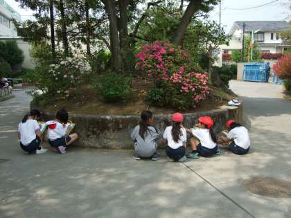 【4年生】理科 公開日 2019/05/09 更新日 2019/05/09 4年生 理科では「あたたかくなって」という学習をしています。 校内の生き物や植物の様子を観察しています。 春になると植物はどうなるのか、虫の活動はどうかなど、身近な環境から学習を広げています。 4年