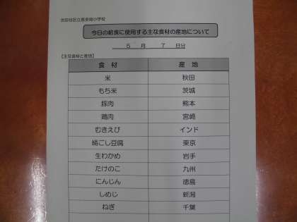 給食では、ちまきの中身の「中華おこわ」と「みたらしだんご」でお祝いしました。みんな元気に大きくなりますように!
