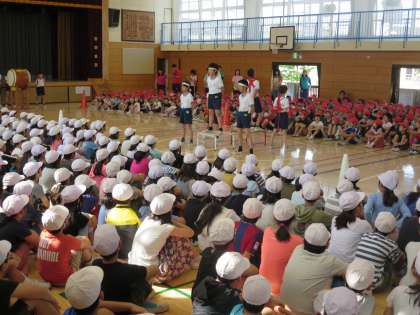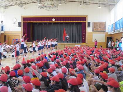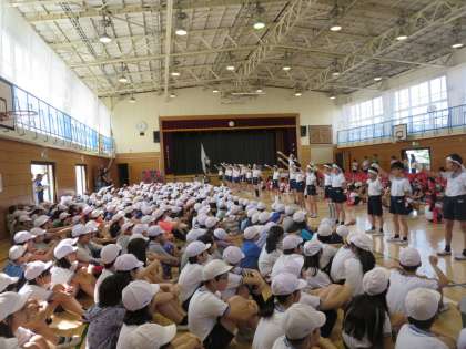 応援団結団式 公開日 2019/05/14 更新日 2019/05/14 その他の教育活動 5月10日 運動会に向け、赤組・白組に分かれて応援団結団式を行いました。 応援団のメンバーを中心に応援練習をしました。 運動会の勝利を目指し、両チームとも手拍子や大きな掛け声で盛り上がっていました。 応援団が一生懸命にみんなを引っ張る姿が頼もしく、かっこよかったです。 運動会が今から楽しみです。