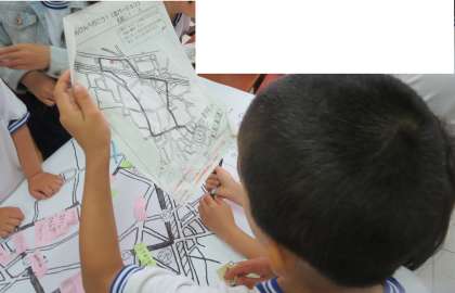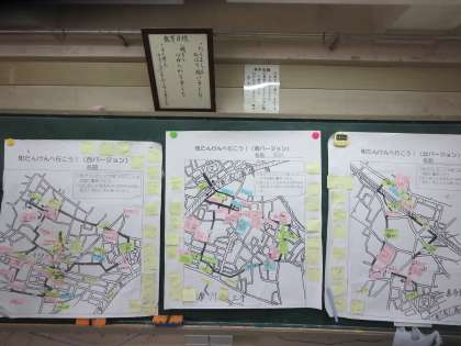 社会(3年生) 公開日 2019/05/15 更新日 2019/05/15 3年生 5月14日 3年生は先日、社会科の授業の一環で学校近辺の町探検をしました。 子どもたちが三つのチームに分かれて、学校の北側・南側・西側の地理的環境を調べてきました。 今日は、その町探検で見つけた物を地図にまとめました。 「学校の北側と言えば○○があるよね。」「西側には幼稚園や保育園が多いな。」とチーム毎に各方角の特徴を押さえながら地図を作り上げることができました。 3年