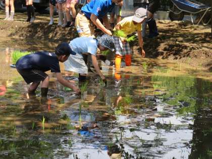 初めは水田の泥の感触に驚く子どもたちでしたが、係の方の説明をしっかり聞きながら稲を植えていました。感想を聞いてみると、どの子どもたちも「楽しかった。」と笑顔でした。