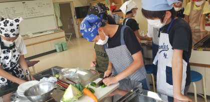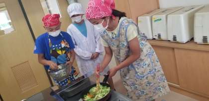 野菜の切り方を工夫したり、炒める順番に気を付けたりと、料理のポイントを学びながら楽しく調理していました。