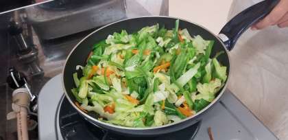 6年生になって初めての調理実習で、野菜炒めを作りました。