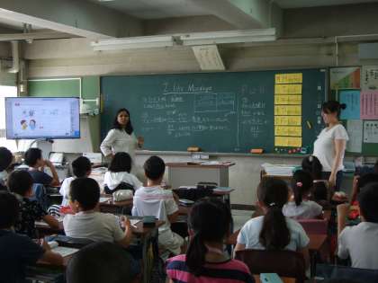 外国語活動は9回目となり、ALTの先生ともコミュニケーションが取れるようになってきました。楽しく活動しながら、身近な英語を学習しています。