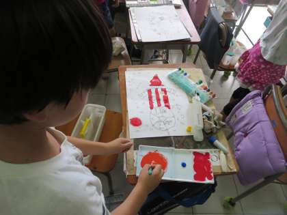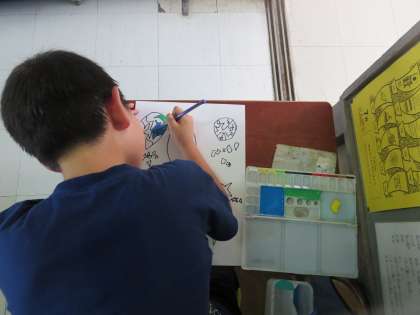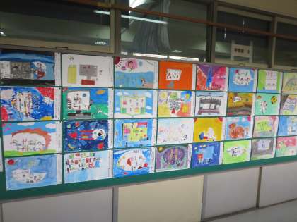 図工(3年生) 公開日 2019/06/28 更新日 2019/06/28 3年生 6月28日 図工で「ふしぎな乗りもの」を描きました。 傘・テレビ・本・巨大な猫等、あれ?こんなものが乗りものに!と思う不思議な乗り物がたくさんできました。この乗り物に乗って、どんなところに行くかを想像し、背景を描きました。 3年